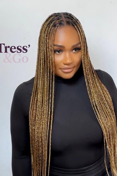 Chez Tresses & Go, nous apportons l’art des tresses africaines à domicile. Nos coiffeuses réalisent des box braids, boho braids, knotless braids, faux locs et cornrows